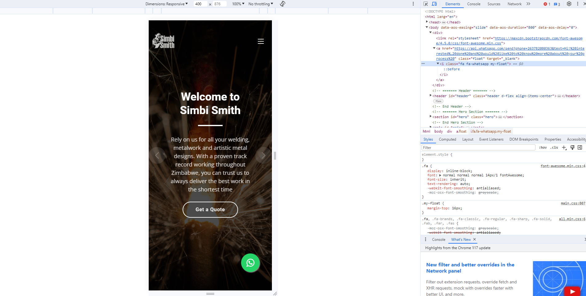 Simbi Smith is a start up fabrication business that deals with metals, plastics and timber to create all manner of product. We took on the exciting task to build them a new website which was completed on the 11th of October 2023. The clients, Simbi Smith, seemed to be over joyed at the idea of finally being online>. They now use the website as a means to attract new clients to thier work, which is increasing thier brand awareness as well as making them more accessible to the general public.